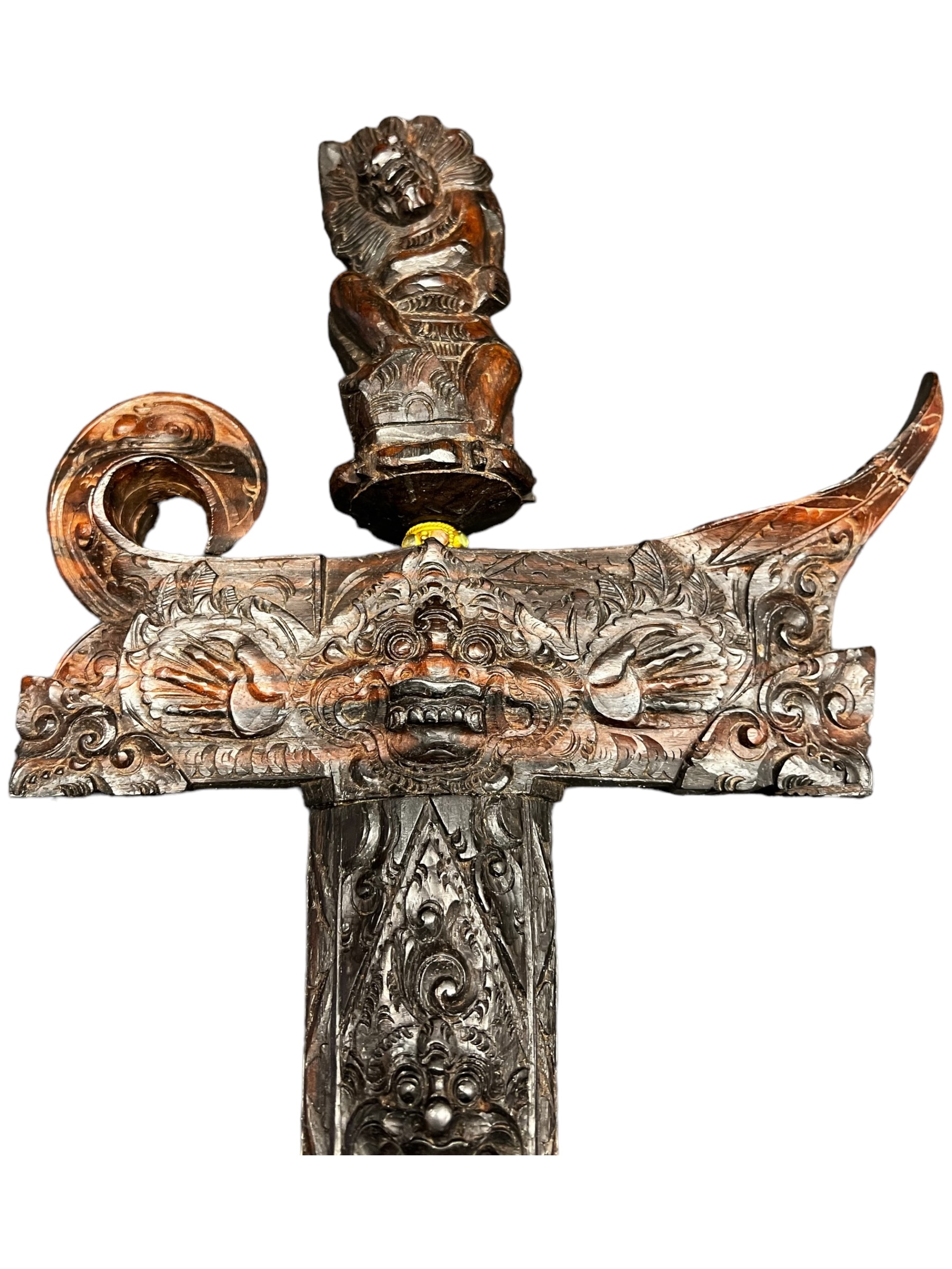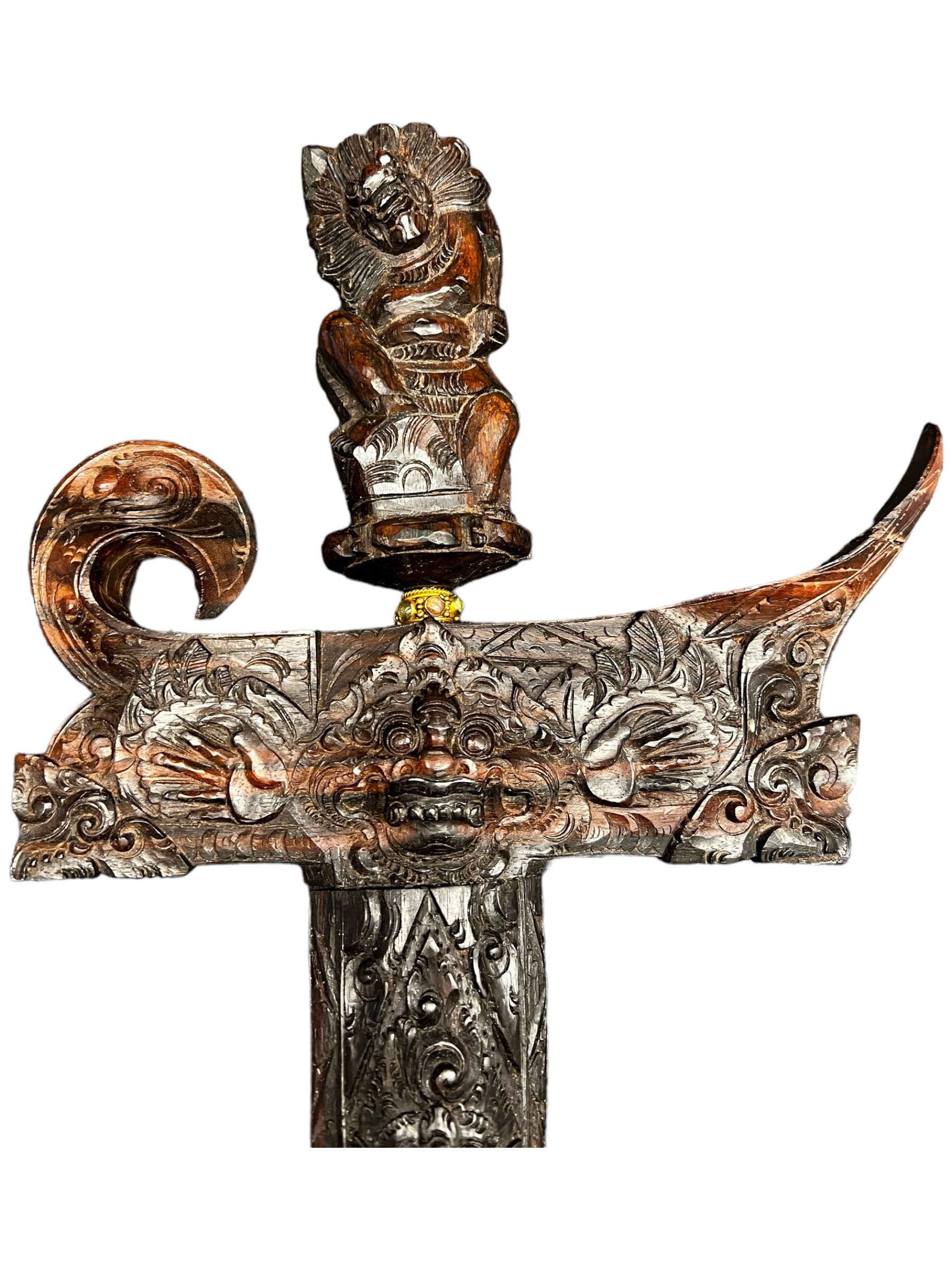 Divinité sculptée sur le manche.